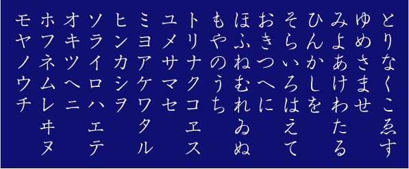 另外,现行的假名字形是1900(明治33)年的《小学校领实施规则》中所规定的,除此之外的字形都称为「平假名异体字」。
